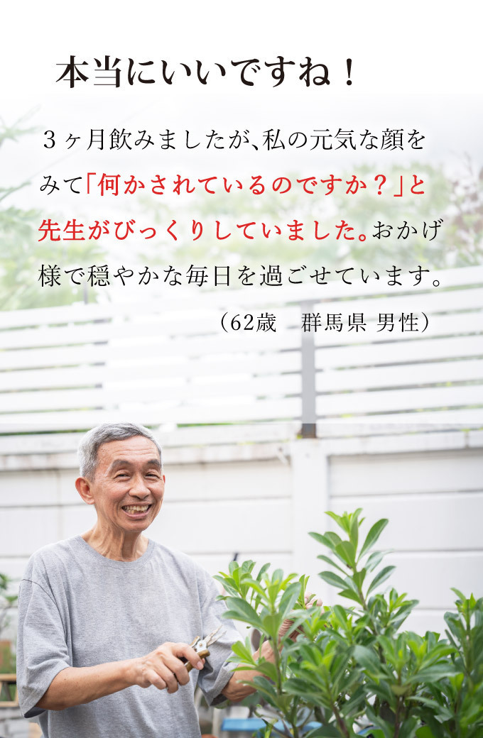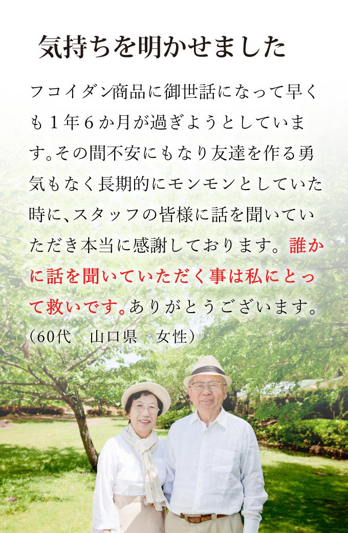 「あのとき、息子の言うことを聞いてもっと早くフコイダンを飲んでおけばよかった。」と山田様。