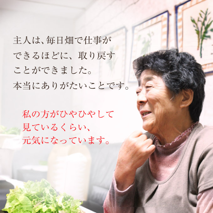 「主人は毎日畑で仕事ができるほどに笑顔を取り戻すことができて、本当にありがたいです」
